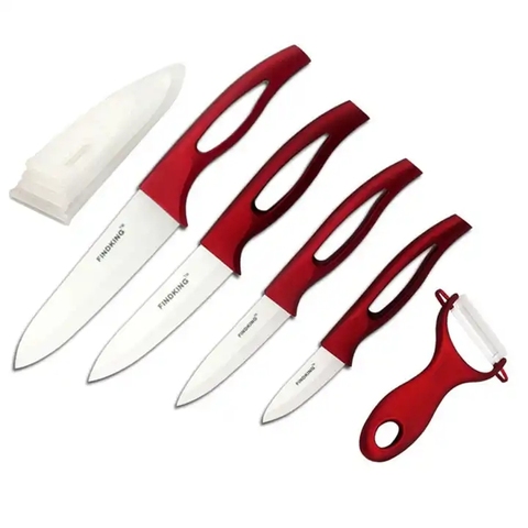 FINDKING Beauty Gifts Zirconia Good Red Handle Ceramic Fruit Knife Kitchen Set 3" 4" 5" 6" Inch+ Peeler+Covers